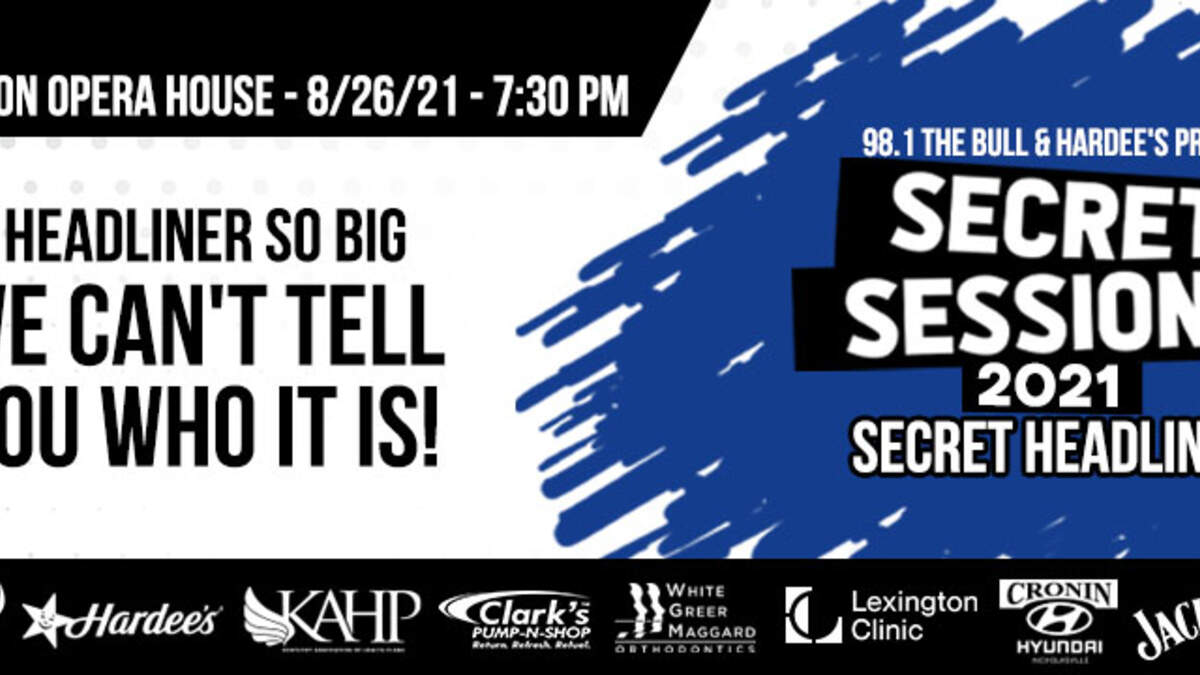 98.1 The Bull and Hardee’s present the return of Secret Sessions Concert Series on Thursday, August 26, 7:30pm at the Lexington Opera House.